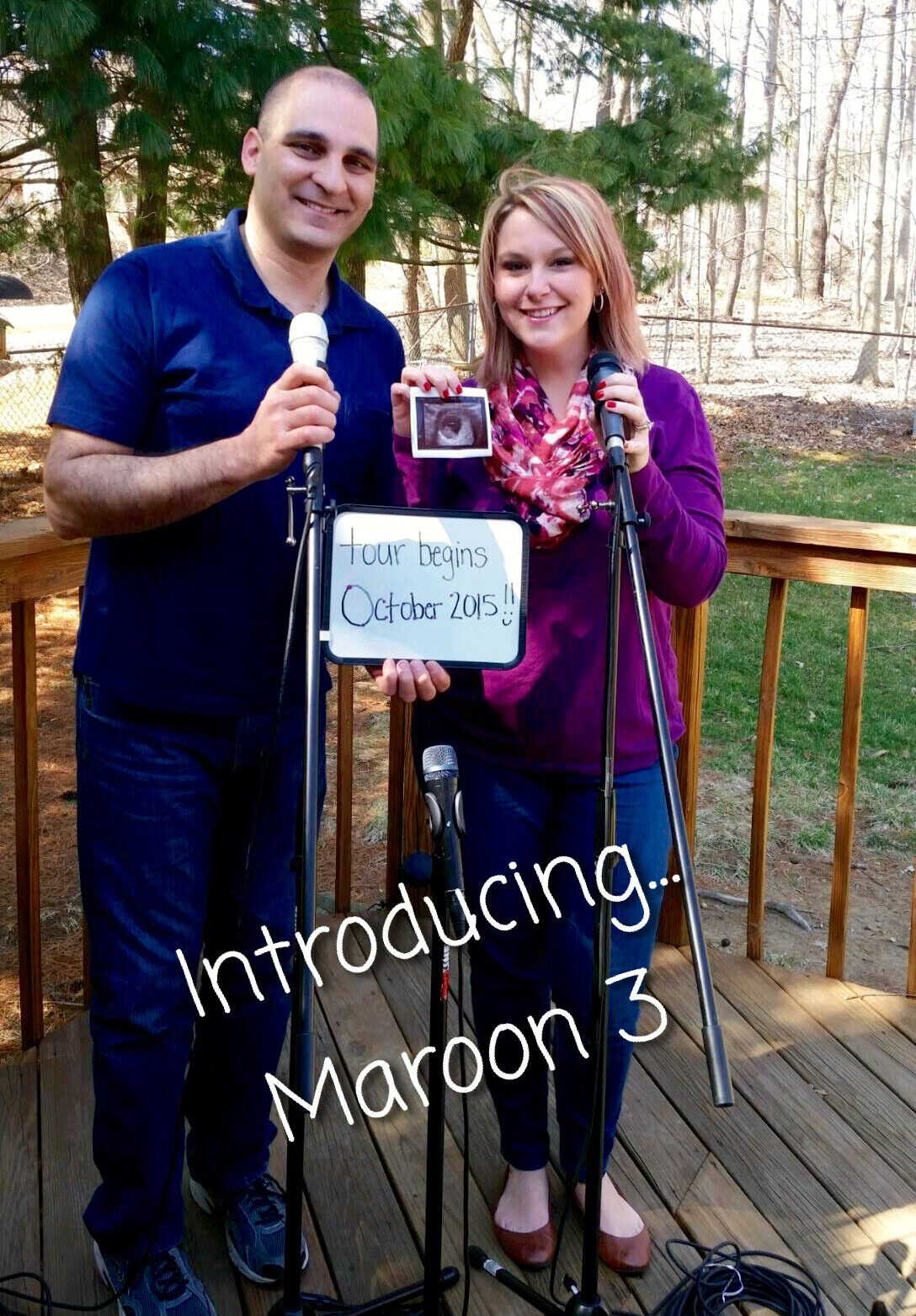 “I hope this baby can sing,” is the first thing I told Tony after the initial shock wore off. We laughed, but then I realized THAT was the announcement! Because the group Maroon 5 was popular, and we share the same last name, we decided to call ourselves Maroon 3 and start the “tour” in October, when Ashlie was due.
